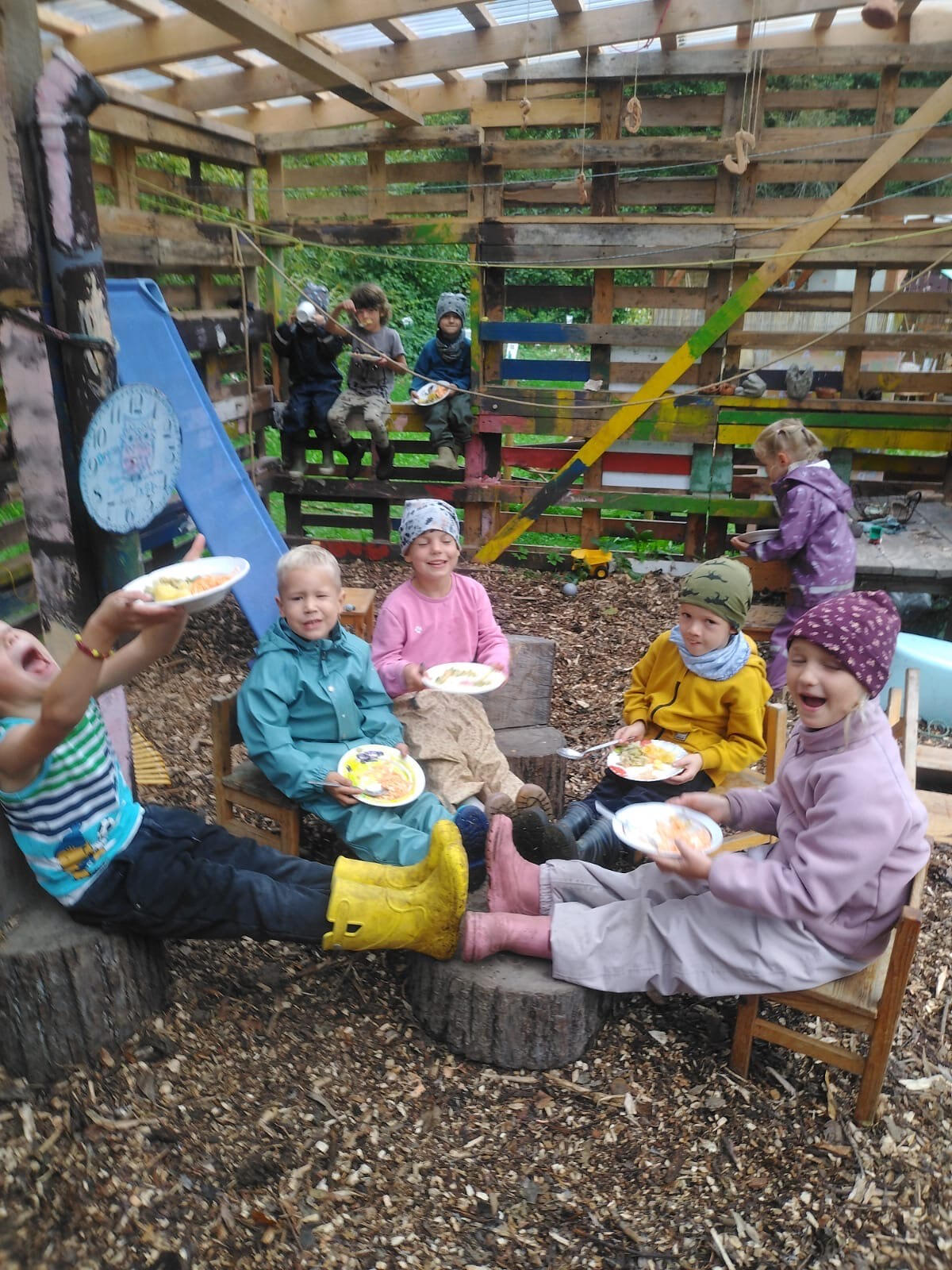 Šeit bērnība ir krāsaina un brīva kā paša noskatīta varavīksne. “Varavīksnes putns” ir vieta, kur bērni aug dabā, elpo svaigu gaisu un izzina pasauli ar acīm, ausīm un sirsniņu.Mazās grupiņas bērni dienu pavada gan laukā, gan telpās, atkarībā no laikapstākļiem. Lielāko dienas daļu viņi pavadām plašajā pagalmā — nesteidzīgi vērojot gadalaiku maiņas, klausoties putnu dziesmās un vēja šalkās, pētot kukaiņus, gliemežus un augus. Viņi redz, kā kurmis rok savus rakumus, kā lapas dejo vējā, un piedzīvo pasaules brīnumus tuvplānā.Pagalmā bērnus gaida plaša smilšu kaste, dažādas šūpoles un rotaļu vietas, kur var spēlēties, kustēties un vienkārši būt — būt klātesošiem, priecīgiem un zinātkāriem.Katras dienas brīnums ir pasaciņa, ko stāstām un rādām kā galda teātri. Tā attīsta bērnu iztēli, valodu un spēju ieklausīties, vienlaikus saglabājot rotaļīgu prieku un mīļu noskaņu.“Varavīksnes putns” — vieta, kur bērni aug ar dabas ritmu, mācās brīvībā un izzina pasauli ar prieku un zinātkāri.