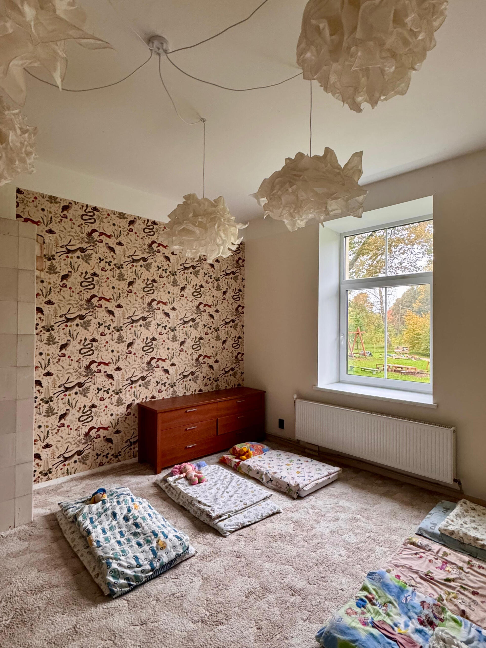 Šeit bērnība ir krāsaina un brīva kā paša noskatīta varavīksne. “Varavīksnes putns” ir vieta, kur bērni aug dabā, elpo svaigu gaisu un izzina pasauli ar acīm, ausīm un sirsniņu.Mazās grupiņas bērni dienu pavada gan laukā, gan telpās, atkarībā no laikapstākļiem. Lielāko dienas daļu viņi pavadām plašajā pagalmā — nesteidzīgi vērojot gadalaiku maiņas, klausoties putnu dziesmās un vēja šalkās, pētot kukaiņus, gliemežus un augus. Viņi redz, kā kurmis rok savus rakumus, kā lapas dejo vējā, un piedzīvo pasaules brīnumus tuvplānā.Pagalmā bērnus gaida plaša smilšu kaste, dažādas šūpoles un rotaļu vietas, kur var spēlēties, kustēties un vienkārši būt — būt klātesošiem, priecīgiem un zinātkāriem.Katras dienas brīnums ir pasaciņa, ko stāstām un rādām kā galda teātri. Tā attīsta bērnu iztēli, valodu un spēju ieklausīties, vienlaikus saglabājot rotaļīgu prieku un mīļu noskaņu.“Varavīksnes putns” — vieta, kur bērni aug ar dabas ritmu, mācās brīvībā un izzina pasauli ar prieku un zinātkāri.